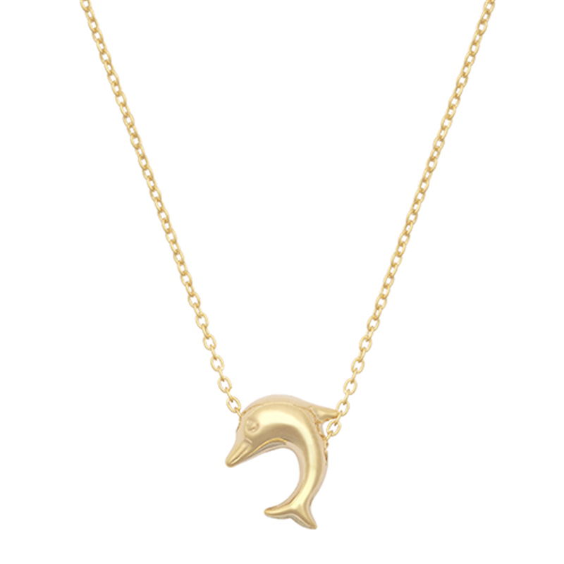 A lovely dolphin slider pendant on a delicate box chain for kids. Length: 16+2".
