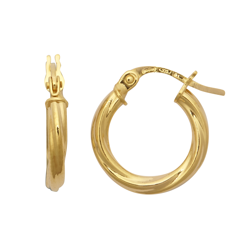9ct Yellow Gold Twist Hoop Earrings 10mm