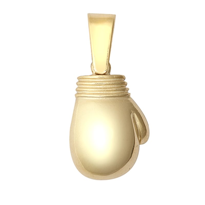 A solid pendant in the shape of a right-hand boxing glove. Width: 16.35mm Height: 32.42mm Depth: 6.43mm