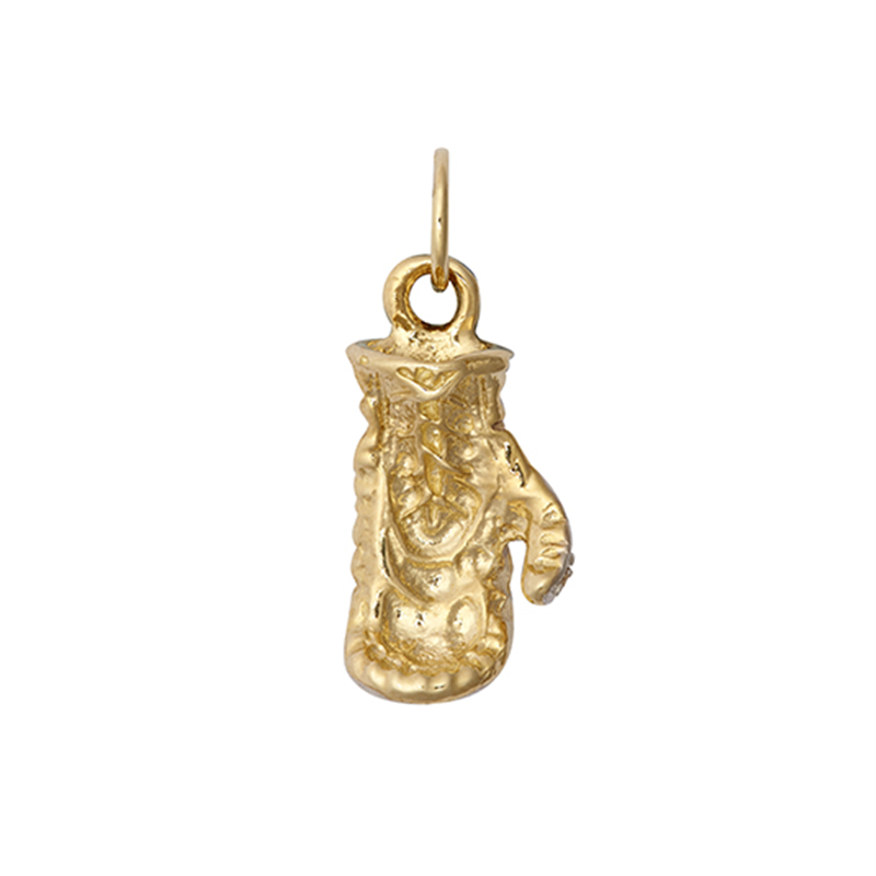 A substantial pendant in the shape of a left/right-hand boxing glove set with cz stones. Width: 10.89mm Height: 27.32mm Depth: 7.41mm