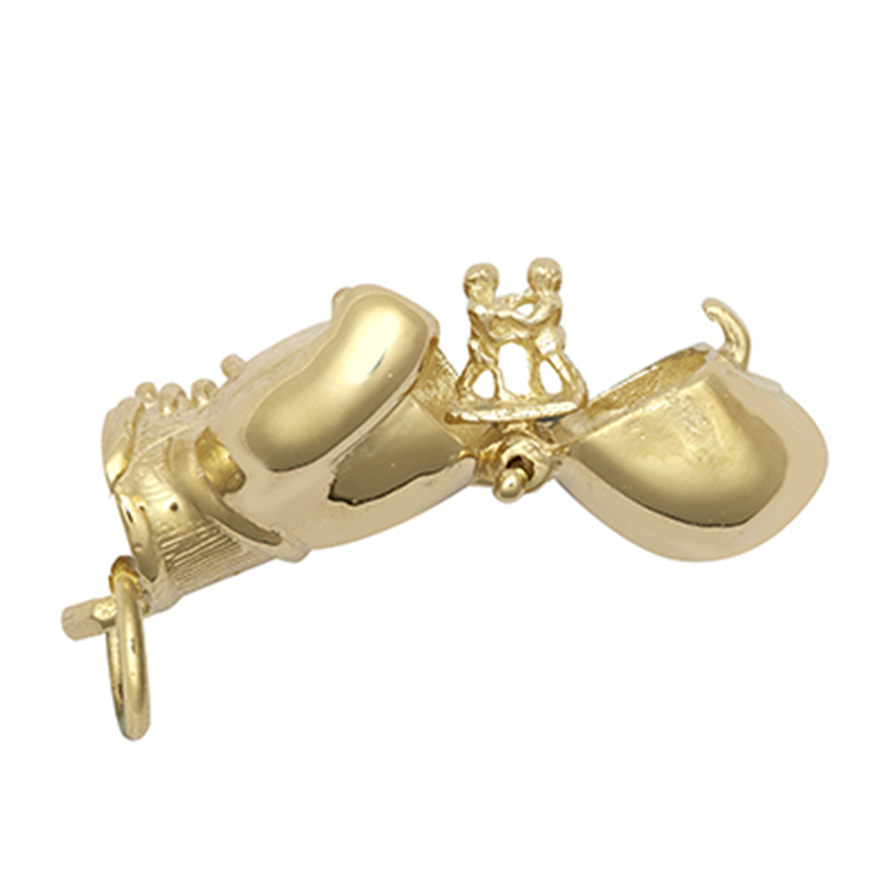 A solid pendant in the shape of a right-hand boxing glove which opens. Width: 16.51mm Height: 28.12mm Depth: 9.77mm