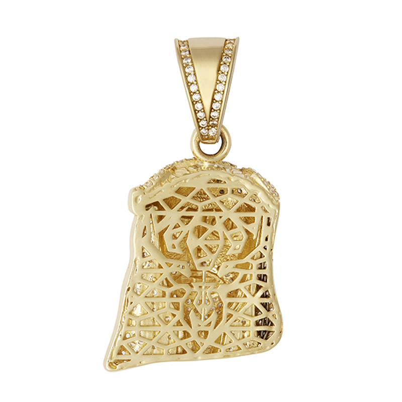 9ct Yellow Gold small Cz Jesus Head Pendant.